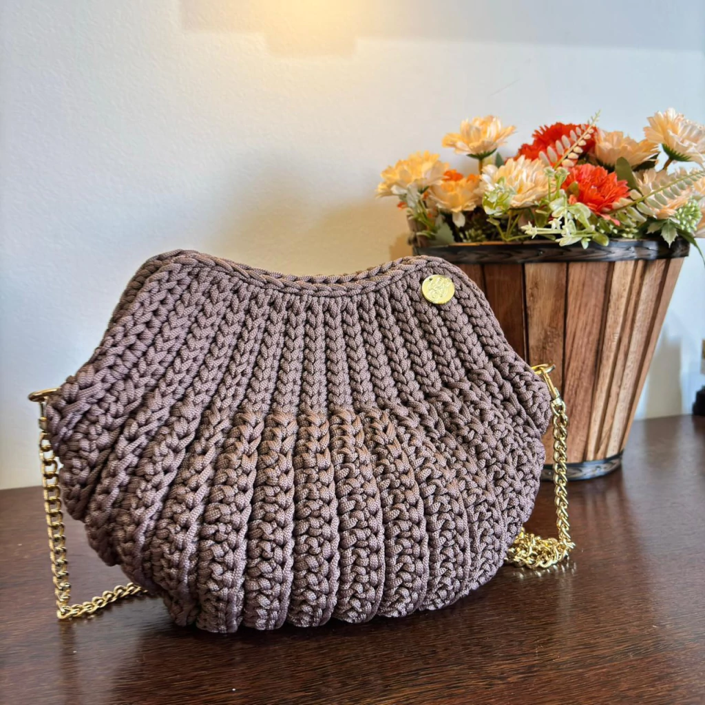 A Bolsa Búzios é aquela peça que conquista no primeiro olhar. Feita em crochê artesanal, ela traz um design único, inspirado nas formas naturais e no movimento das conchas, com volume suave e textura marcante que transforma qualquer look.